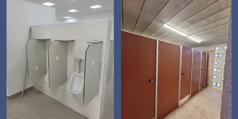 - Escolher o material inadequado para as divisórias para banheiro coletivo